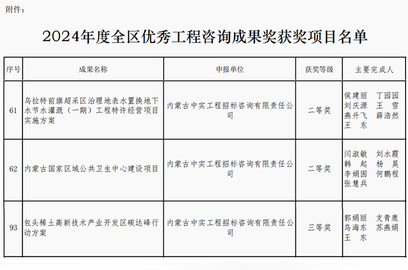 2025-04-1610544 次2025年4月16日,内蒙古工程咨询协会公布了2024年度优秀咨询成果奖获奖单位名单,我司取得两个二等奖和一个三等奖,我司专业能力和服务质量再次获得行业的认可。此次获奖,不仅体…